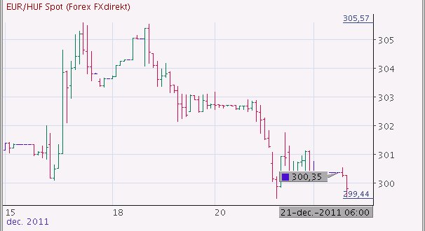 A forint nem gyengült, hanem éppen erősödött. Még csak erős kilengéseket sem mutatott. Most 299,44-en áll.