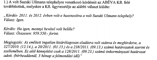 2011. és 2012-es évben volt-e hasznosítva a volt Suzuki Ullmann telephely?