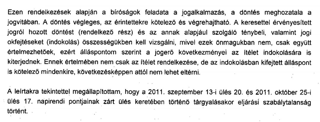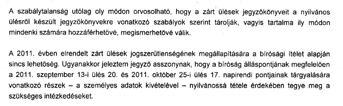 Különös fordulatot vett a volt suzuki telephely tulajdonszerzésének ügyében lefolytatott helyi 'vizsgálat' részleteinek megismerése érdekében tett kísérletünk. Megismételt elsőfokú eljárás után a Budapest Környéki Törvényszék 2014. június 30-án kelt jogerős ítéletében kötelezte Alsónémedi Önkormányzatát a Budai és Kovács ügyvédi iroda által készített szakvélemény korábban kitakart részeinek megküldésére. Az jogerős ítélet az indoklásban azonban azt is kimondta, hogy az ügyben zárt ülések tartására törvényesen nem lett volna lehetőség, ezért szerettük volna teljes terjedelmében megismerni a részleteket. (Ha nem zárt, akkor nyilvános ülés...) Az önkormányzat törvényességi felügyeletét gyakorló Pest Megyei Kormányhivatal szakmai állásfoglalásában osztotta az álláspontunkat és megállapította, hogy 'eljárási szabálytalanság történt': A törvényességi felügyeleti szerv jelezte, hogy a jegyző asszony - a személyes adatok kivételével - tegye mindenki számára hozzáférhetővé a korábban zárt ülések jegyzőkönyveinek vonatkozó részét. Az önkormányzatnak most már papírja van róla, hogy titkolózva, a nyilvánosság jogtalan kizárásával tárgyalta meg a volt suzuki telephely tulajdonszerzésének körülményeit. |
