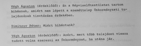 Szépen lassan kezd összeállni a kép az akkori cigánygödör, most szeméthegy tulajdonjog-változásával kapcsolatban. Még mindig az a kérdés, hogy dr. György Balázs miért magánszemélyként licitált 1993 év végén. Ebben a jegyzőkönyvben még az is felmerül, hogy az önkormányzat eleve résztulajdonnal rendelkezett, de akkor ez egy 'tollvonással rendezve' lett. Ráadásul a nyilatkozatok szerint a licitálók figyelembe vették volna az önkormányzat közösségi érdek miatti prioritását és felesleges árfelhajtásba sem is mentek volna bele. Elhangzott jónéhány (a jelenlegi következmények ismeretében) kulcsmondat is: