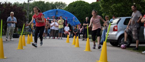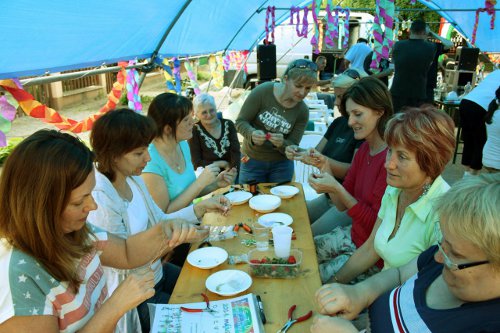 Szerencsére most már szinte mindenki számára teljesen világos volt a szomszédünnep - a lehetőségéhez mérten mindenki hozzon valamit - konstrukciója, ami tökéletesen működött. A gyerekeknek finom szörpökből készültek az itókák. Többen igazán jól sikerült házi készítésű szörpöket hoztak, volt is hozzá szomjas gyerekszáj bőven. A délután a mozgás jegyében telt: kosár, tengó, tollaslabda, kidobós és más ügyességi játékok vették birtokba a még szabad aszfaltcsíkot. Szívesen láttuk a környékbeli utcákból érkezőket is. Idén nem lángos, hanem zsíros kenyér és zöldhagyma volt a kínálatunk. A hagyma olyan finom volt, hogy még elvitelre is kértek.