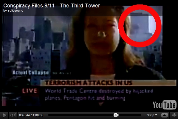 A BBC percekkel korábban számol be élőben az összeomlásról, miközben az épület még áll, de csak rövid ideig, mert egyszer csak megszakad a műholdkapcsolat...talán rájöttek, hogy elszúrták? Jól látszik a LIVE felirat fellett az 'Actual collapse' is.
